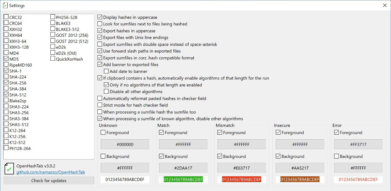一款 Windows 资源管理器扩展工具,允许用户在文件属性窗口中直接查看文件哈希值,如 MD5、SHA1 等。