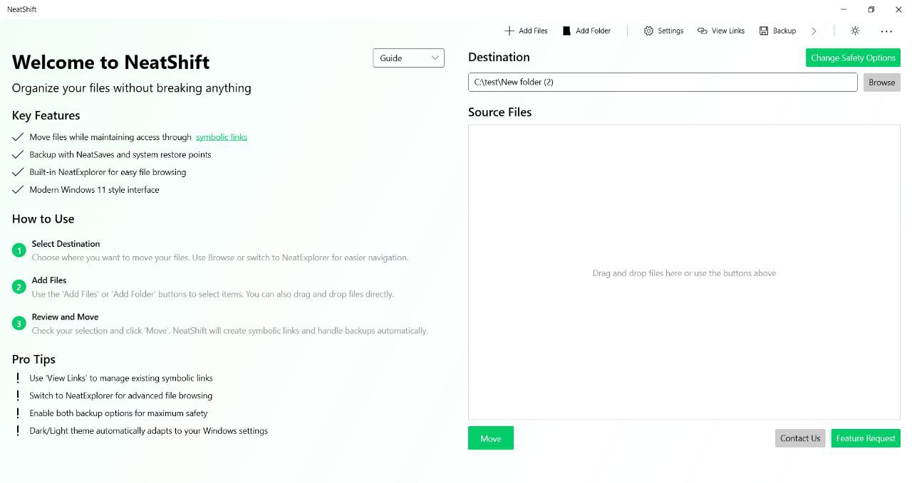 一款现代化文件迁移与整理工具,用于将大型文件夹(如游戏、软件等)从系统盘无损迁移至其他磁盘,通过自动创建符号链接确保原路径不变,程序依然可正常运行。